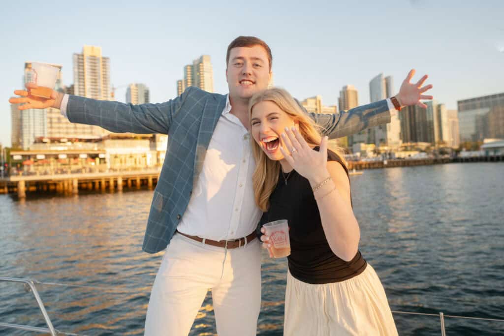 Transform a beautiful moment into a once-in-a-lifetime experience with a private sunset proposal on the water. Set against the backdrop of San Diego’s skyline and golden evening light, your engagement unfolds in an intimate, elegant setting designed entirely around you.